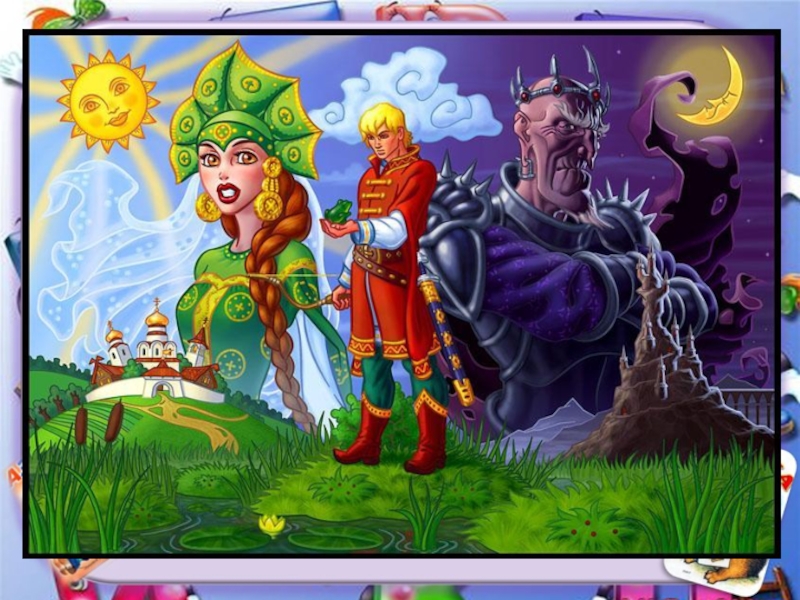 Слайд 23 Стрела, лягушка, кощей Бессмертный, яйцо, игла