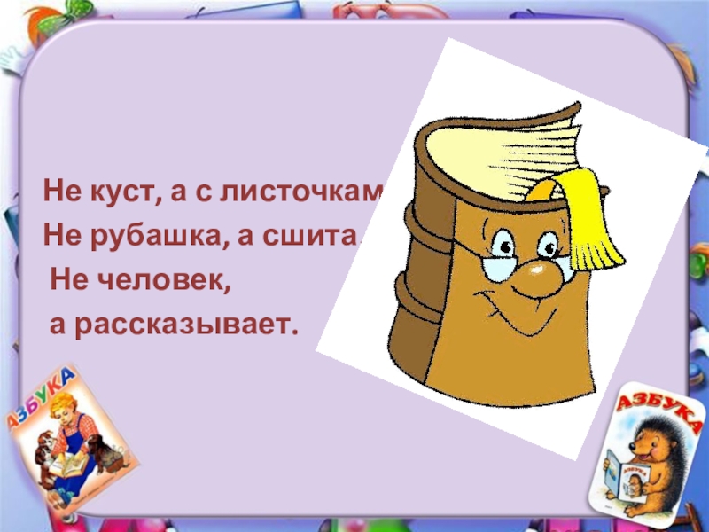 Не куст, а с листочками, Не рубашка, а сшита, Не человек, а рассказывает.