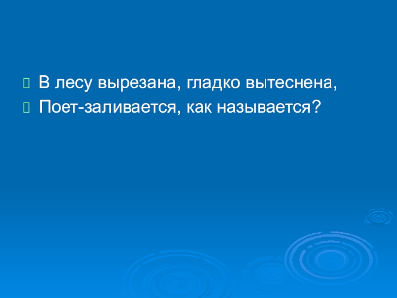 В лесу вырезана, гладко вытеснена,Поет-заливается, как называется?