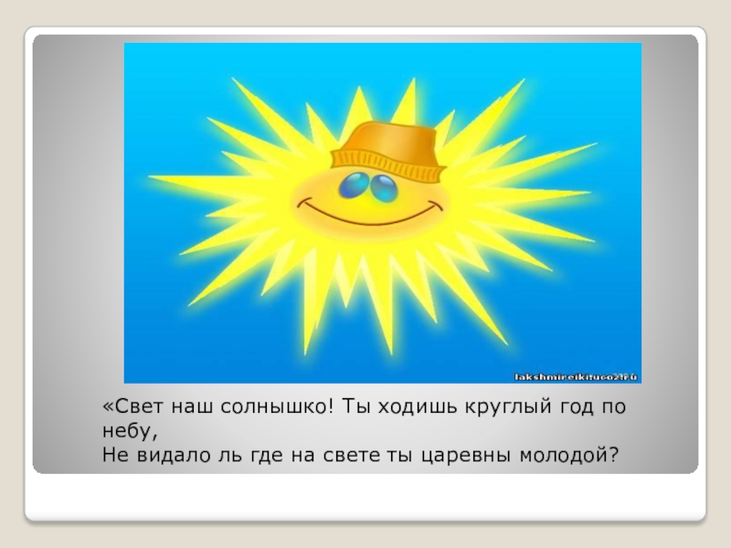 Слайд 6«Свет наш солнышко! Ты ходишь круглый год по небу, Не видало ль