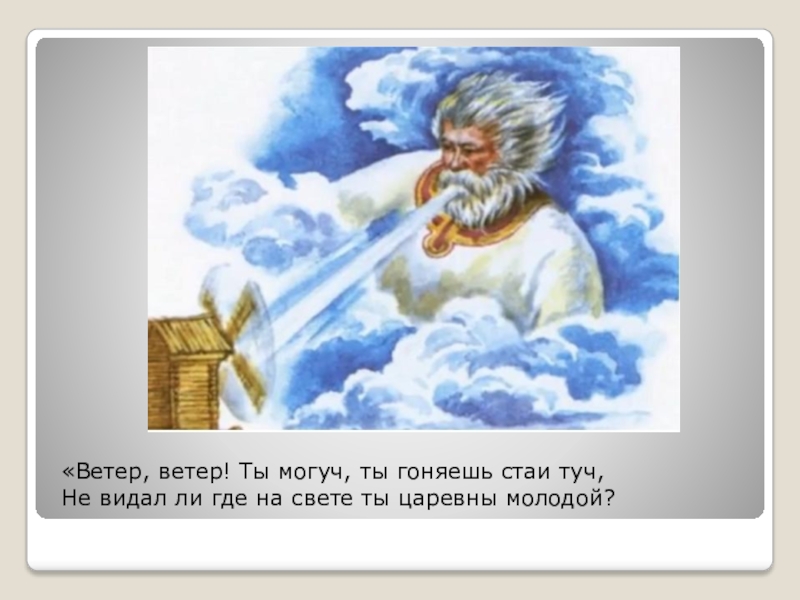 Слайд 7«Ветер, ветер! Ты могуч, ты гоняешь стаи туч, Не видал ли