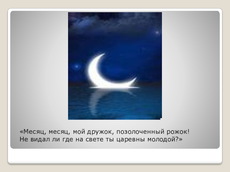 «Месяц, месяц, мой дружок, позолоченный рожок! Не видал ли где на свете ты царевны молодой?»