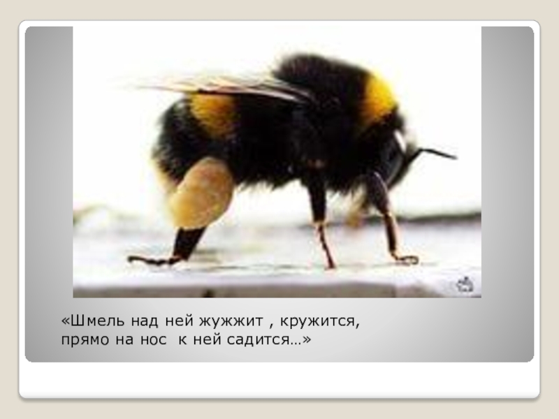 Слайд 3«Шмель над ней жужжит , кружится, прямо на нос к ней садится…»