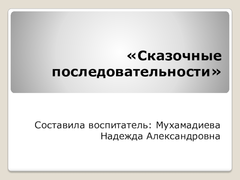 «Сказочные последовательности»Составила воспитатель: Мухамадиева Надежда Александровна