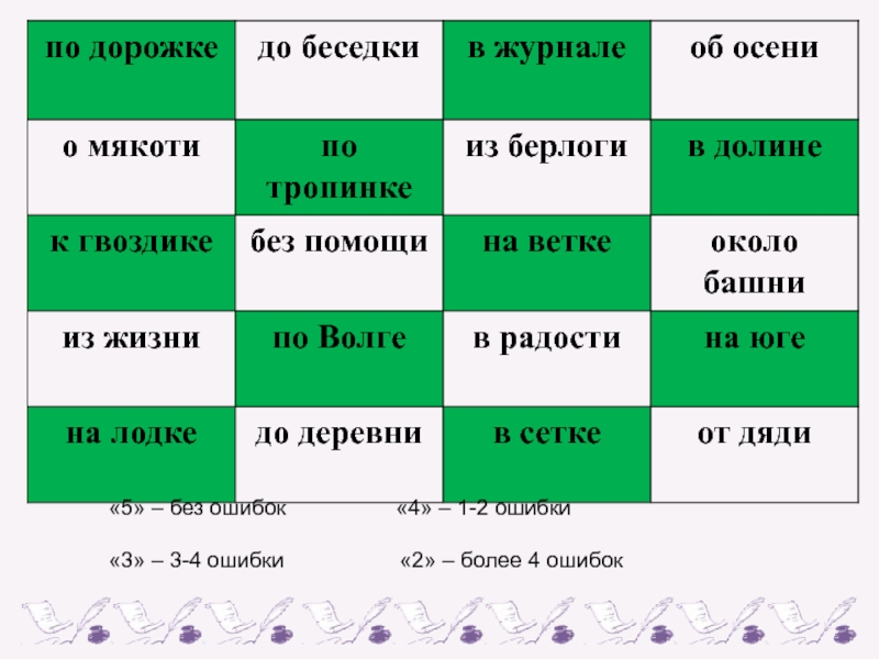 «5» – без ошибок         «4» – 1-2 ошибки«3» –