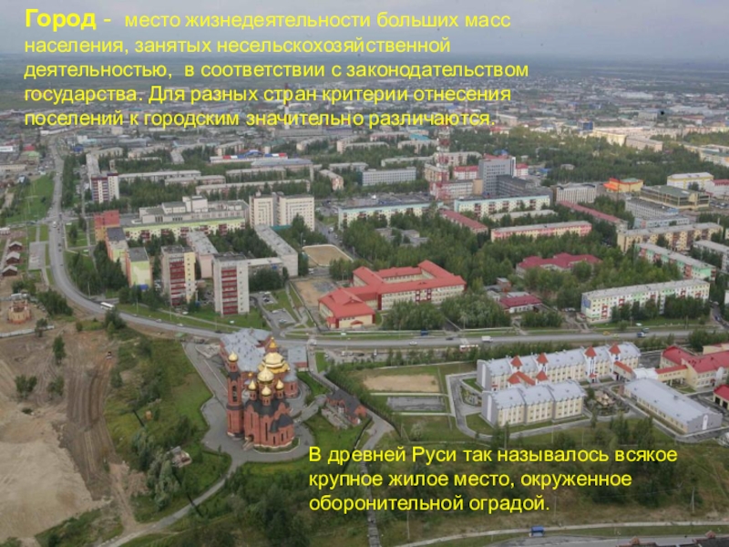 В древней Руси так называлось всякое крупное жилое место, окруженное оборонительной оградой.