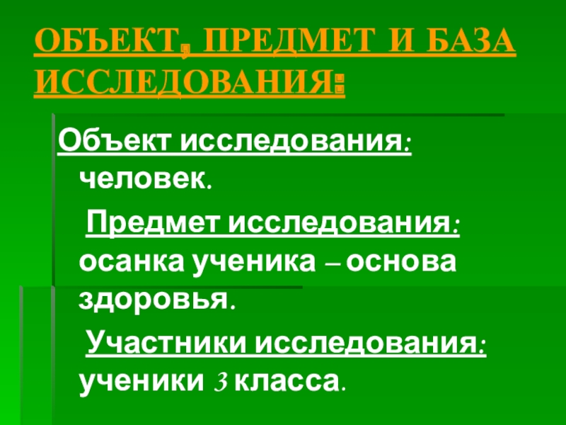 Слайд 4ОБЪЕКТ, ПРЕДМЕТ И БАЗА ИССЛЕДОВАНИЯ: