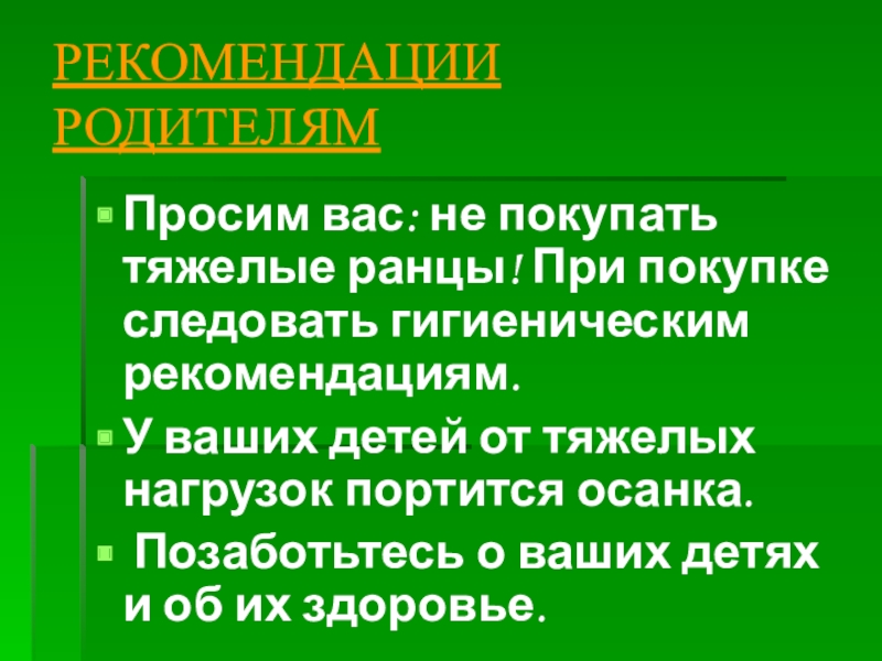 Просим вас: не покупать тяжелые ранцы! При покупке следовать гигиеническим