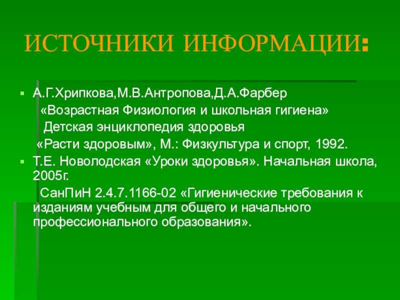 СанПиН 2.4.7.1166-02 «Гигиенические требования к изданиям учебным для общего и начального профессионального образования».