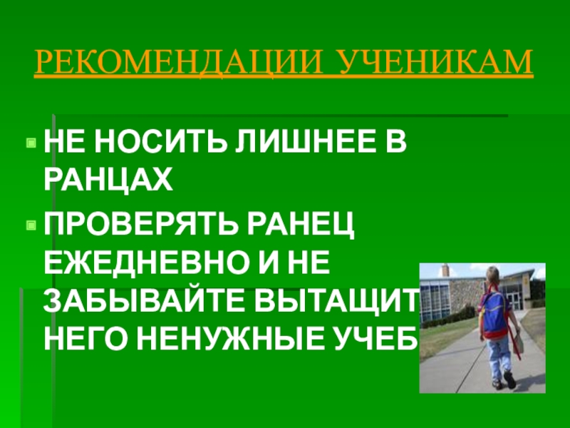 НЕ НОСИТЬ ЛИШНЕЕ В РАНЦАХ