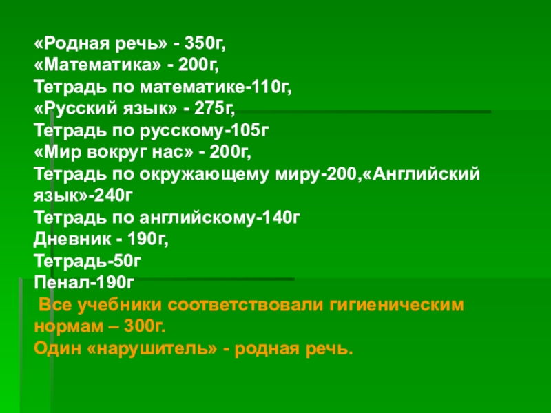 Все учебники соответствовали гигиеническим нормам – 300г.