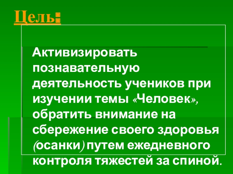Активизировать познавательную деятельность учеников при изучении темы «Человек», обратить