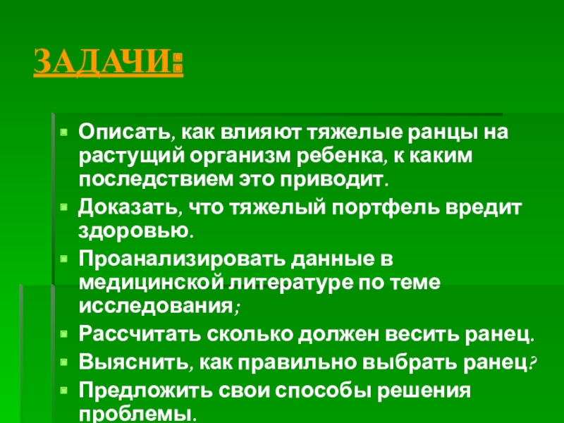 Описать, как влияют тяжелые ранцы на растущий организм ребенка, к каким