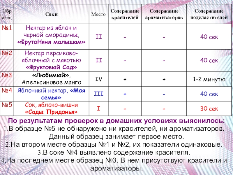 Я попробовала на вкус все образцы соков по очереди и засекла время, после которого ощущение сладости во рту пропадет.