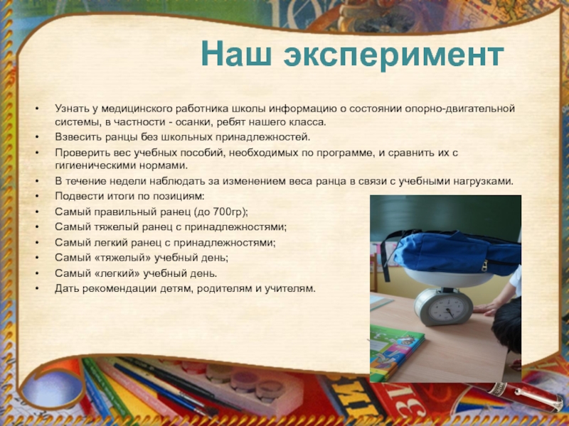 Доказать, что тяжелый ранец вредит здоровью.