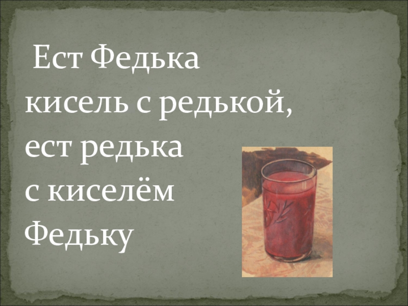 Ест Федька кисель с редькой, ест редька с киселём Федьку