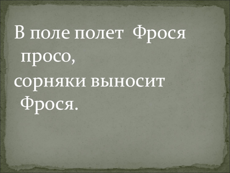В поле полет Фрося  просо, сорняки выносит Фрося.