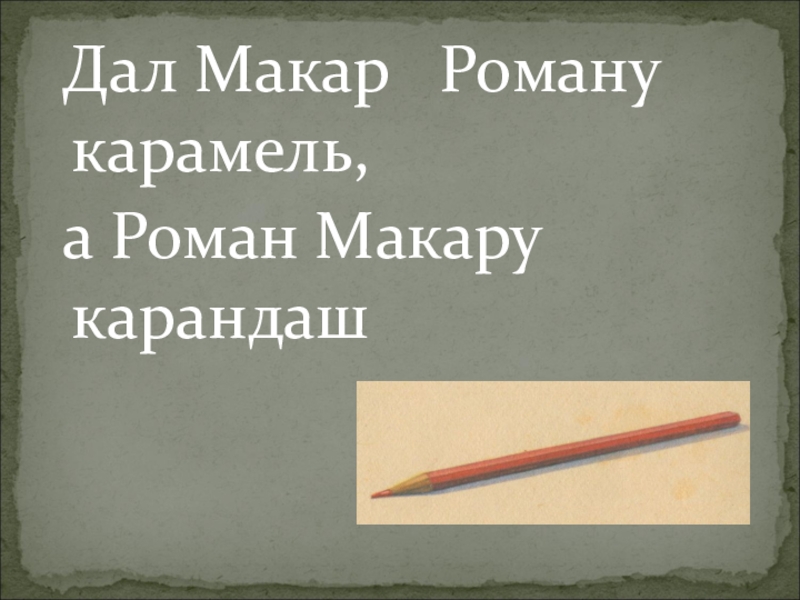 Дал Макар  Роману  карамель, а Роман Макару карандаш