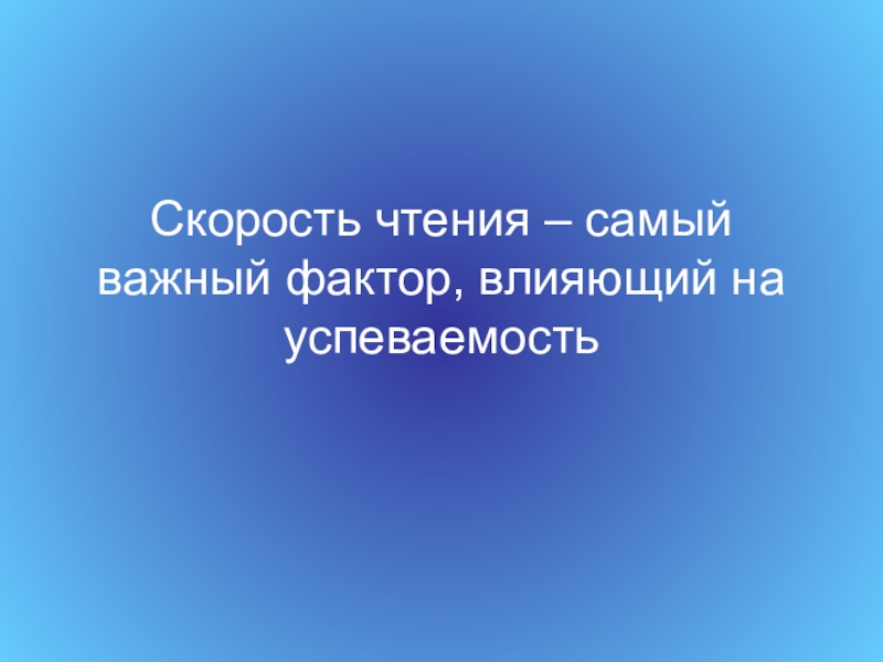 Слайд 1Скорость чтения – самый важный фактор, влияющий на успеваемость