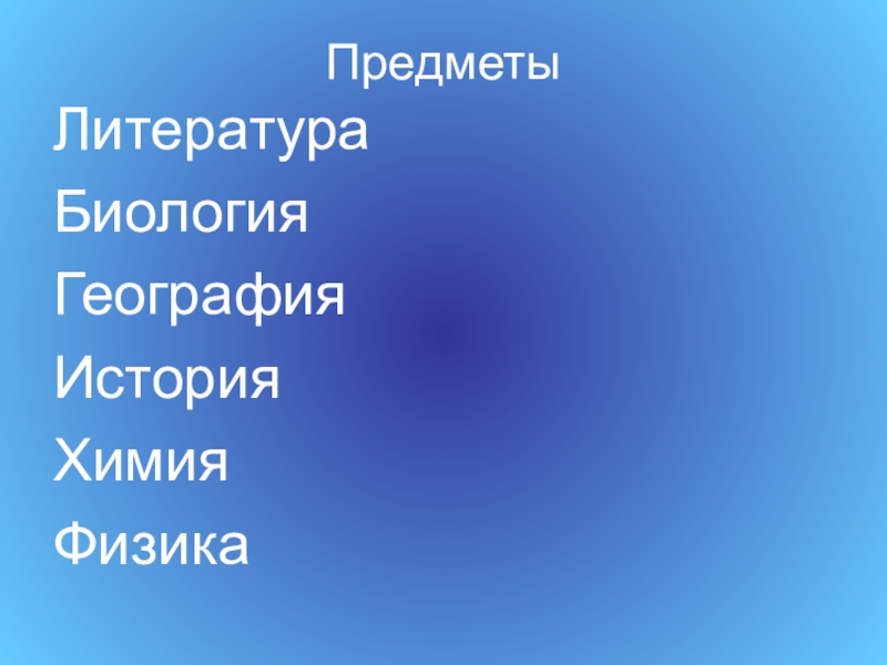 Предметы ЛитератураБиологияГеографияИсторияХимияФизика