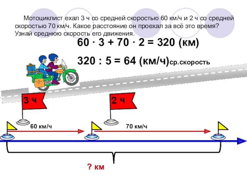 60 ∙ 3 + 70 ∙ 2 = 320 (км)