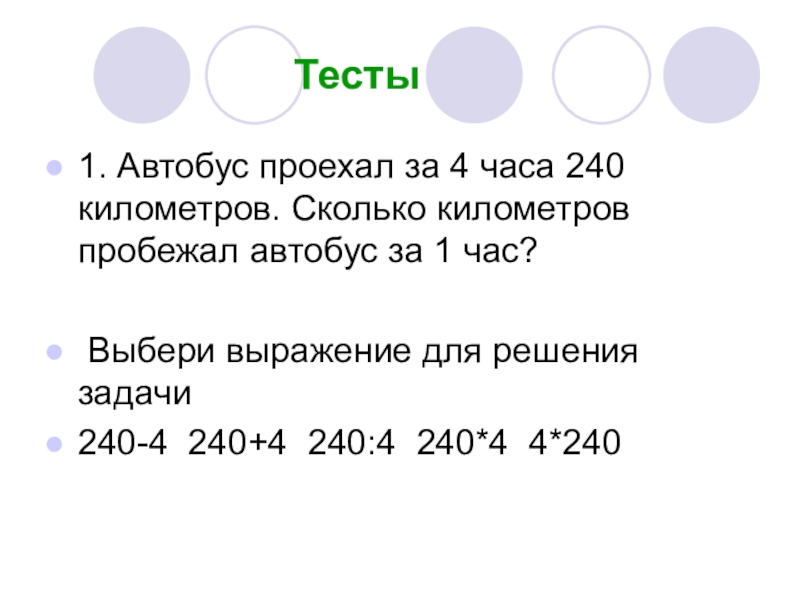 1. Автобус проехал за 4 часа 240 километров. Сколько километров пробежал автобус за 1 час?