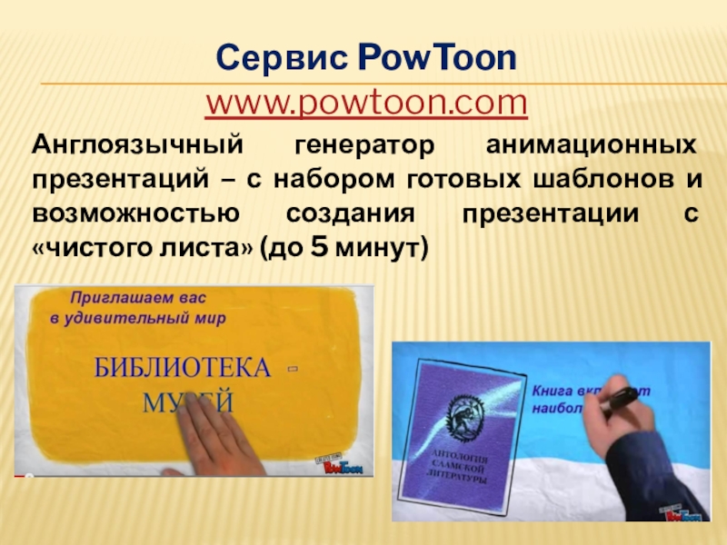 Это сайт презентаций, где можно хранить и обмениваться своими презентациями, докладами, проектами, шаблонами в формате PowerPoint с другими пользователями. Мы помогаем школьникам, студентам, учителям, преподавателям хранить и обмениваться учебными материалами.
