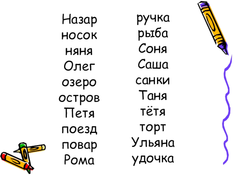 НазарносокняняОлегозероостровПетяпоездповарРомаручкарыбаСоняСашасанкиТанятётятортУльянаудочка