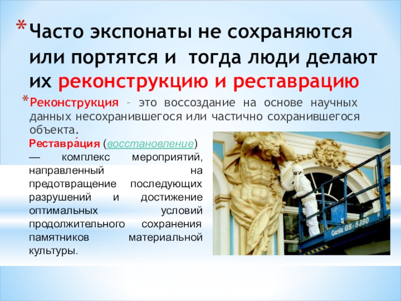 Реконструкция – это воссоздание на основе научных данных несохранившегося или частично сохранившегося объекта.