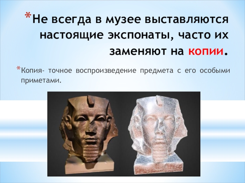 Копия- точное воспроизведение предмета с его особыми приметами.