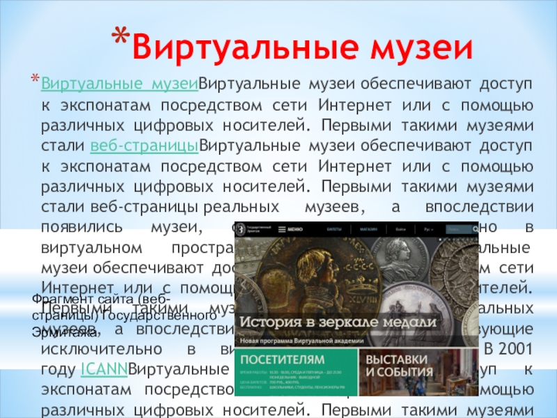 Фрагмент сайта (веб-страницы) Государственного Эрмитажа