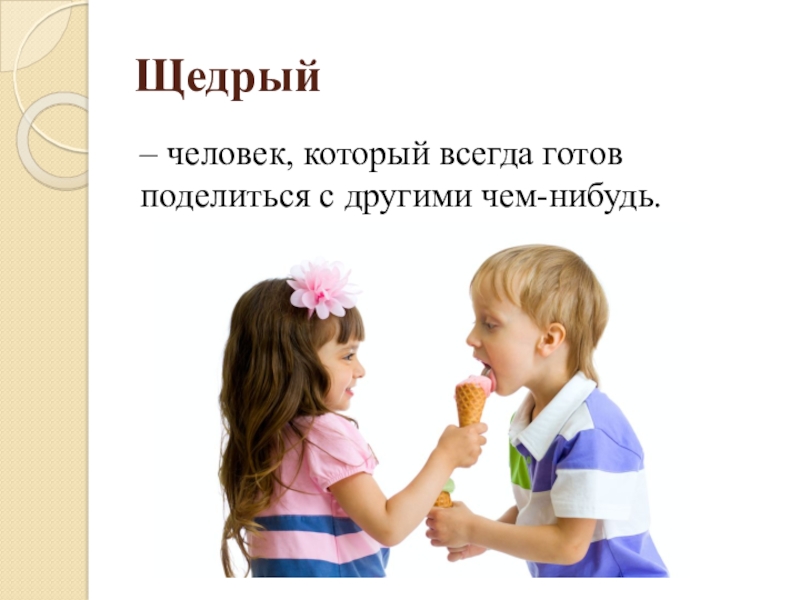 Щедрый – человек, который всегда готов поделиться с другими чем-нибудь.
