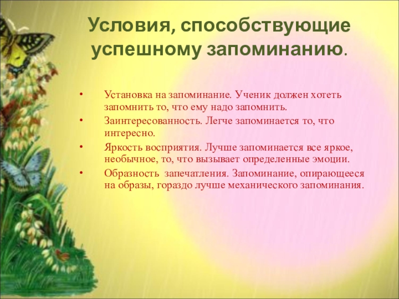 Установка на запоминание. Ученик должен хотеть запомнить то,