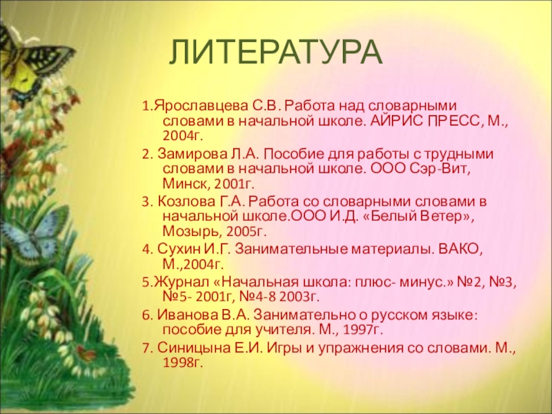1.Ярославцева С.В. Работа над словарными словами в начальной школе. АЙРИС ПРЕСС,