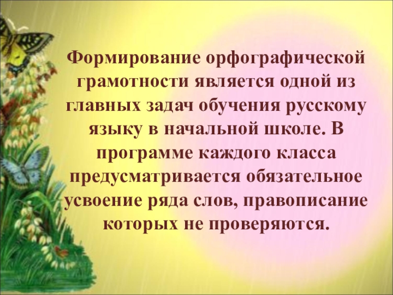Слайд 2Формирование орфографической грамотности является одной из главных задач обучения русскому языку