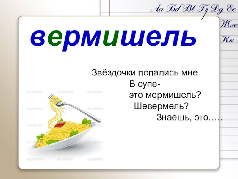 вермишельЗвёздочки попались мнеВ супе-          это мермишель?