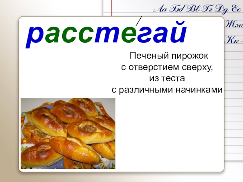 расстегай  Печеный пирожокс отверстием сверху, из теста с различными начинками