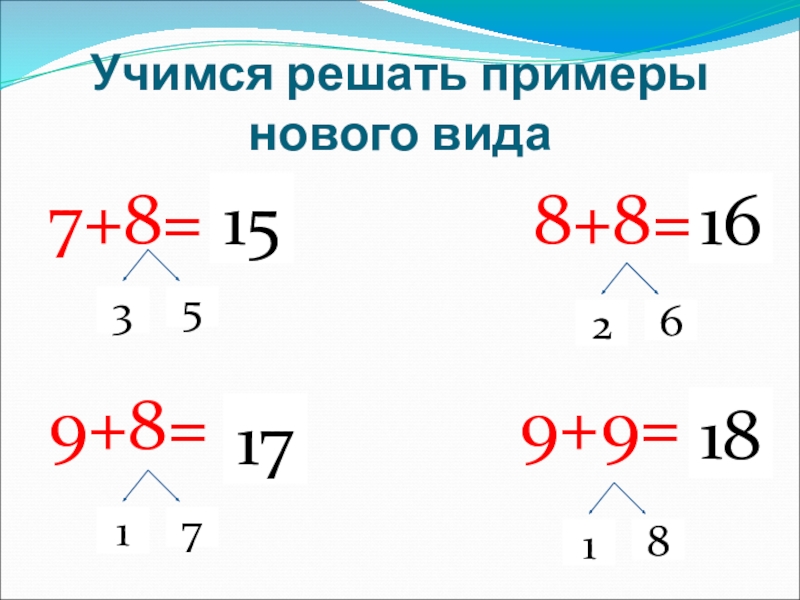Учимся решать примеры нового вида7+8=         8+8= 9+8=