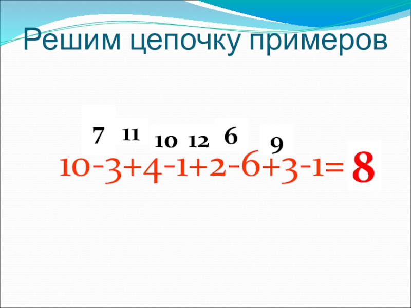 Решим цепочку примеров10-3+4-1+2-6+3-1=8711106912