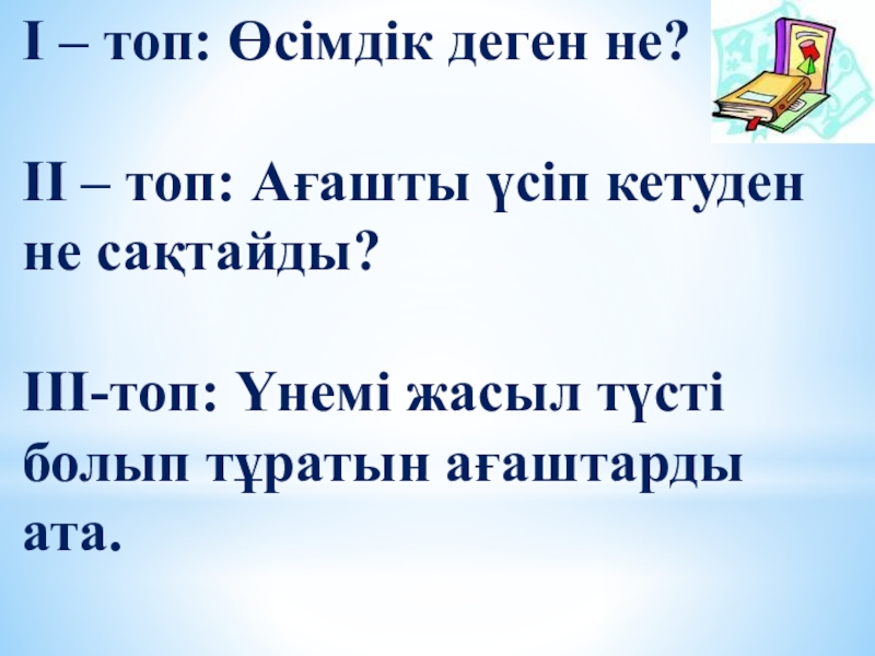 ІІІ-топ: Үнемі жасыл түсті болып тұратын ағаштарды ата.