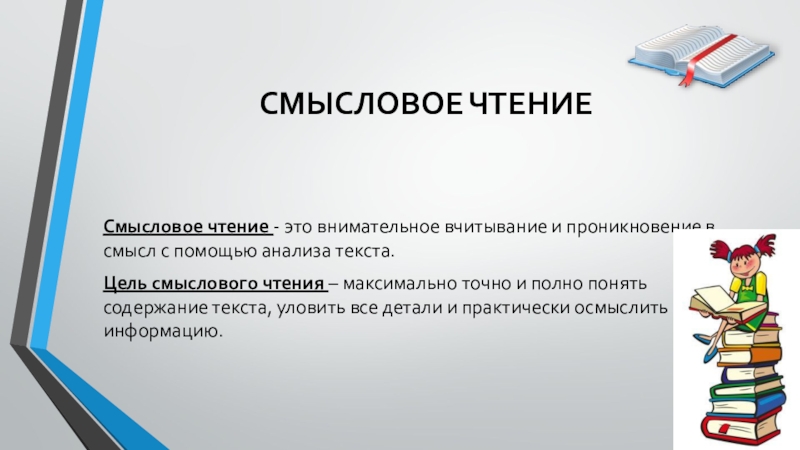 Смысловое чтение - это внимательное вчитывание и проникновение в смысл