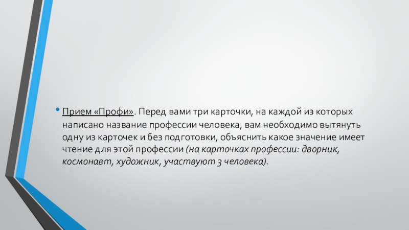 Слайд 11Прием «Профи». Перед вами три карточки, на каждой из которых написано