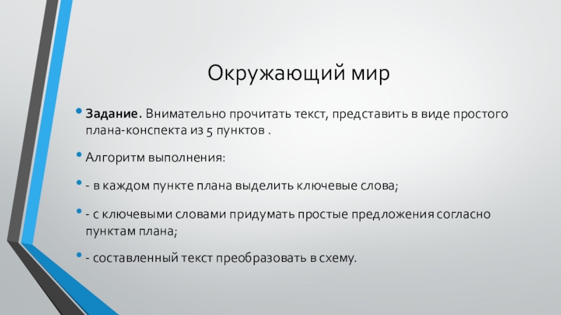 Задание. Внимательно прочитать текст, представить в виде простого плана-конспекта из