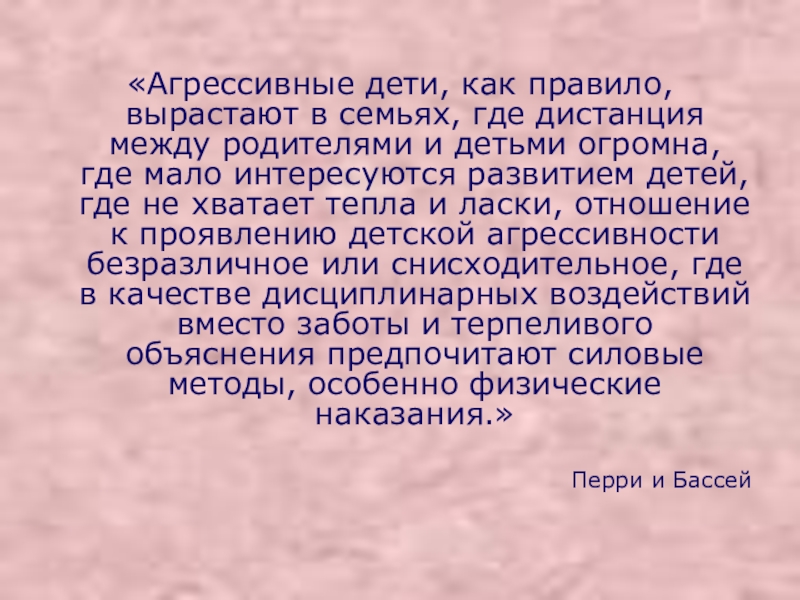 Слайд 10«Агрессивные дети, как правило, вырастают в семьях, где дистанция между родителями