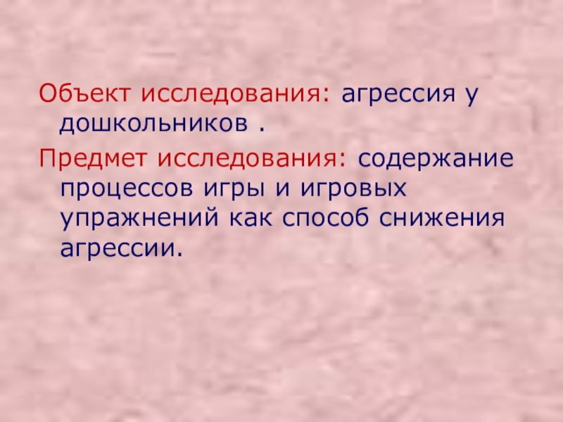 Слайд 6Объект исследования: агрессия у дошкольников .