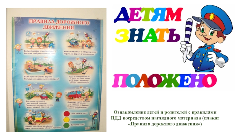 Слайд 15Ознакомление детей и родителей с правилами ПДД посредством наглядного материала (плакат