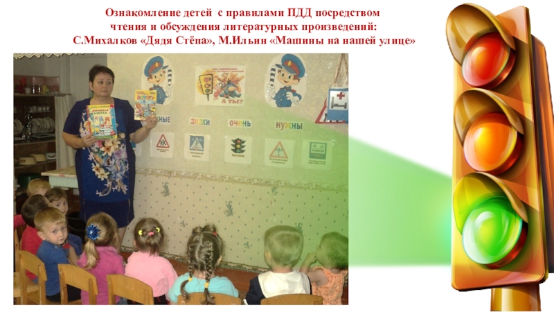 Слайд 9Ознакомление детей с правилами ПДД посредством
