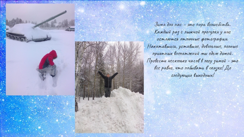 Слайд 14Зима для нас – это пора волшебства. Каждый раз с лыжной