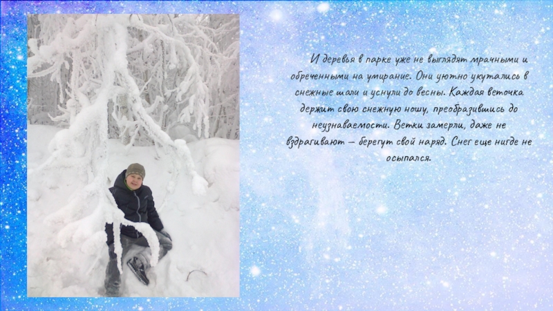 Слайд 3И деревья в парке уже не выглядят мрачными и обреченными на