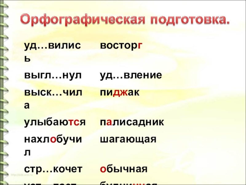 Слайд 26Девочка: в бело-розовом платьице; тапочки, отороченные тёмным мехом; без пальто выбежала